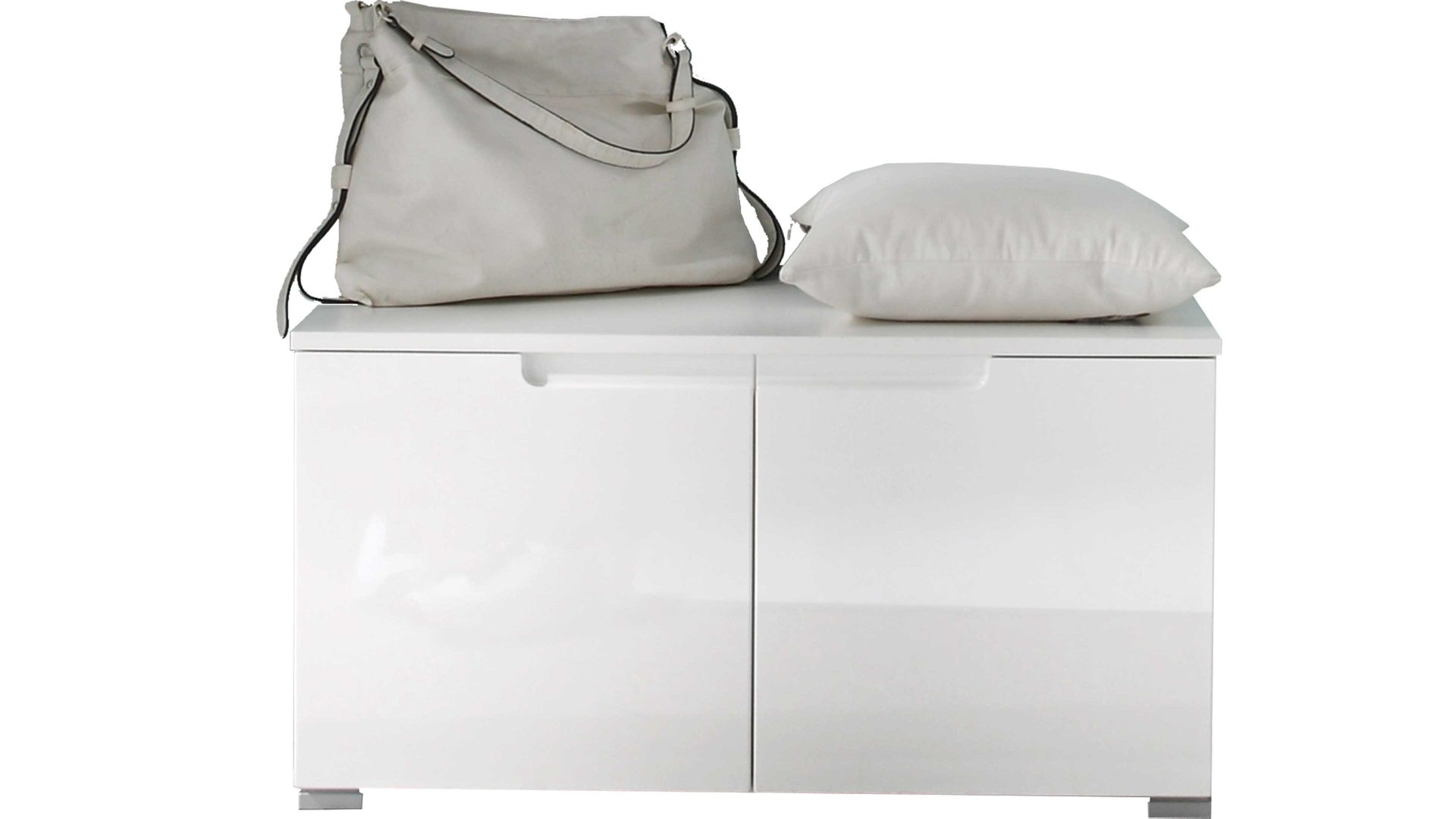 Die Garderobenbank Spice begeistert optisch durch ihren weißen Korpus mit den edlen Hochglanzfronten. Dank der hellen, klassischen Farbgebung strahlt die Dielenbank moderne Eleganz aus. Dieser Eindruck wird durch die grifflose Gestaltung der Fronten stilsicher unterstrichen.