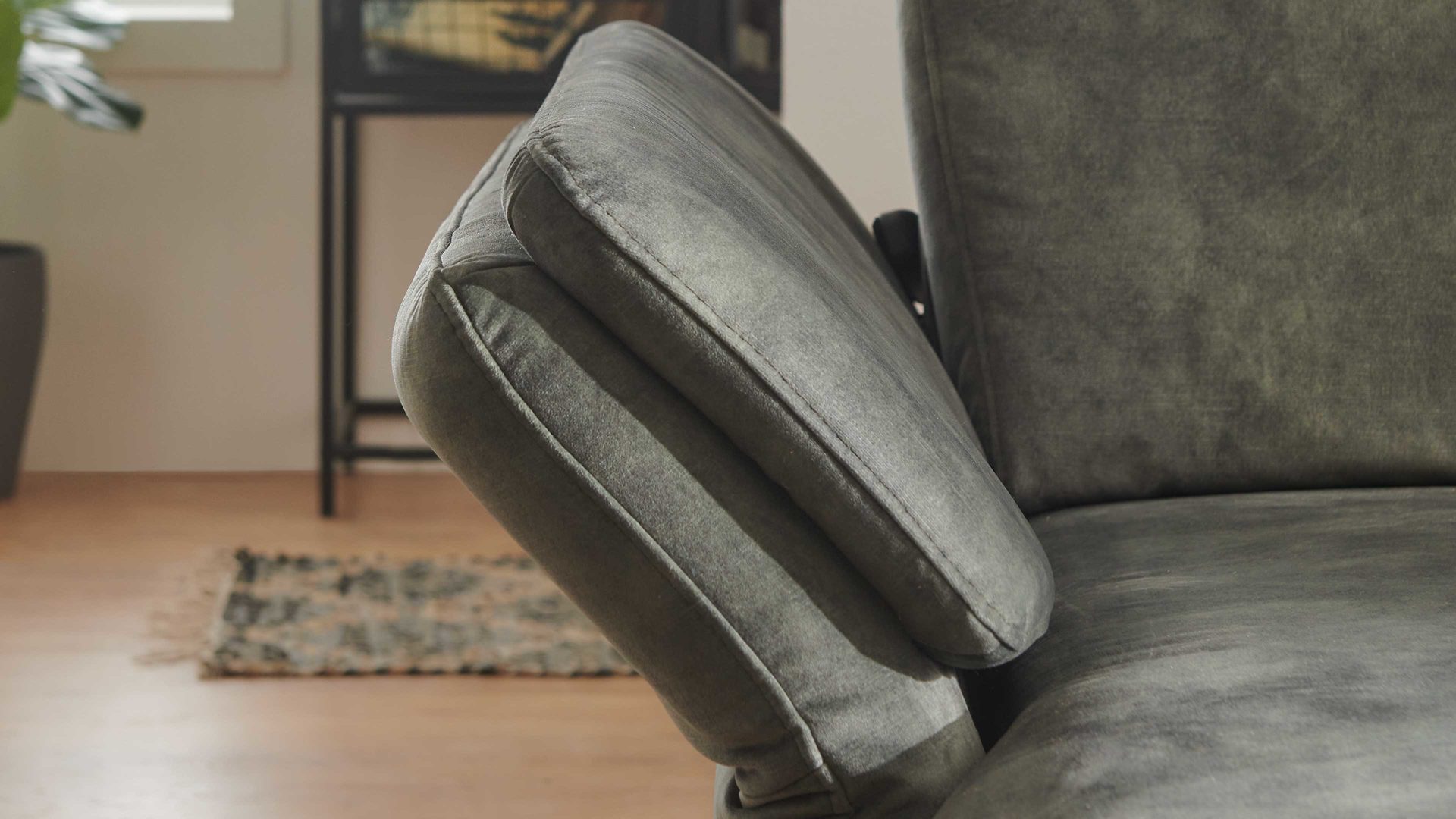 moosfarbener Velours Amira & schwarze Metallfüße - Stellfläche ca. 346 x 227 cm