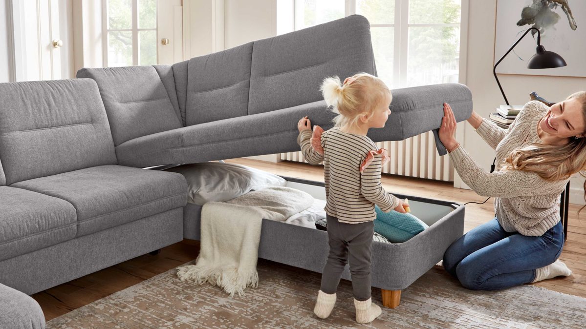 • Die Abbildung zeigt ein Wohnbeispiel, welches auch Dekoration sowie separat erhältliches Zubehör enthält. Im Lieferumfang enthalten ist eine Wohnlandschaft ohne Funktionen.