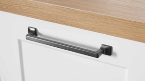 Die WERT KÜCHE® Vida verbindet den charmanten Charakter einer Landhausküche mit einer klaren, modernen Gestaltung. Satinweiße Fronten treffen auf warme Elemente in naturfarbener Asteiche-Nachbildung, während lavaschwarze Sockelblenden und Schwarzstahl-Bügelgriffe stilvolle Kontraste setzen. So entsteht eine Küche, die Gemütlichkeit und zeitgemäßes Design perfekt miteinander vereint.
