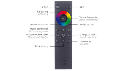 mit Infrarot-Fernbedienung dimmbar und mit der CCT-Lichtsteuerrung von warmweiß zu tageslichtweiß verstellbar