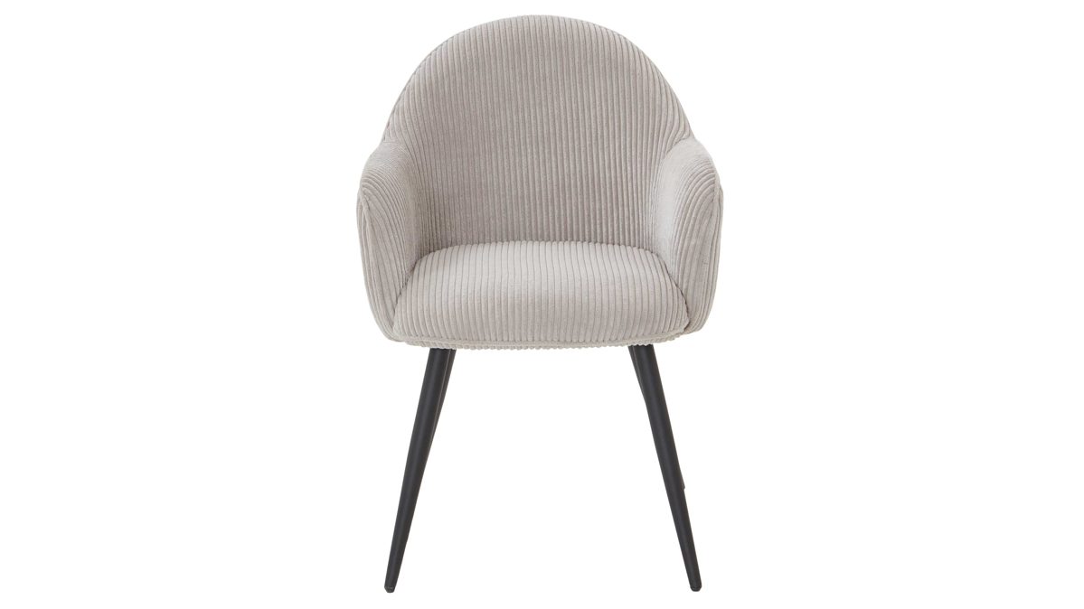 holzkohlefarbener Breitcordbezug und schwarz pulverbeschichtete Metallfüße