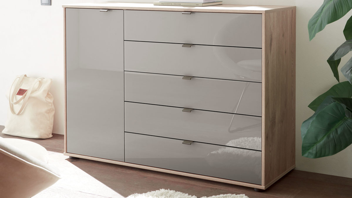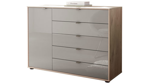 Kieselgrau & Nordic Eiche - eine Tür, fünf Schubladen Breite ca. 120 cm