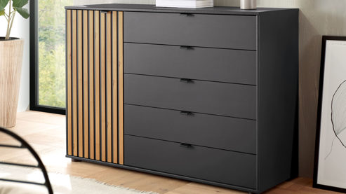 Graphit & Eiche Bianco - eine Tür, fünf Schubladen, Breite ca. 120 cm
