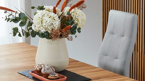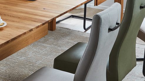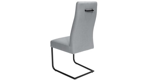 silbergrauer Stoffbezug in Lederoptik, kombiniert mit mattschwarz lackiertem Metall